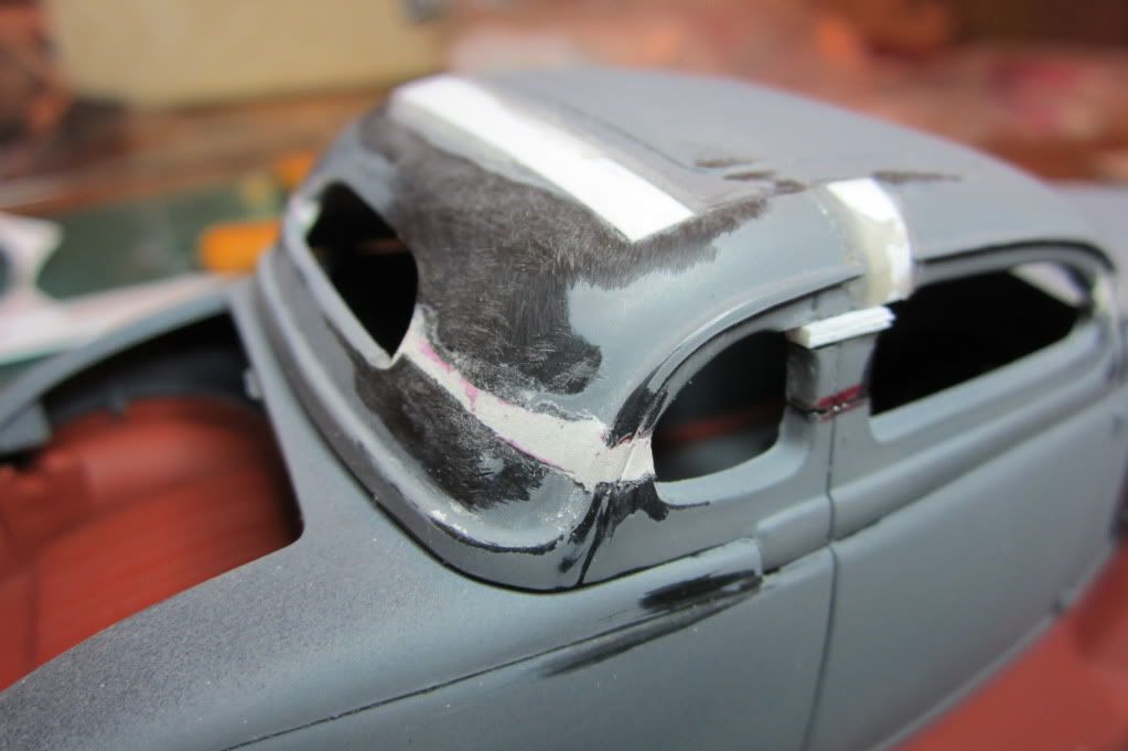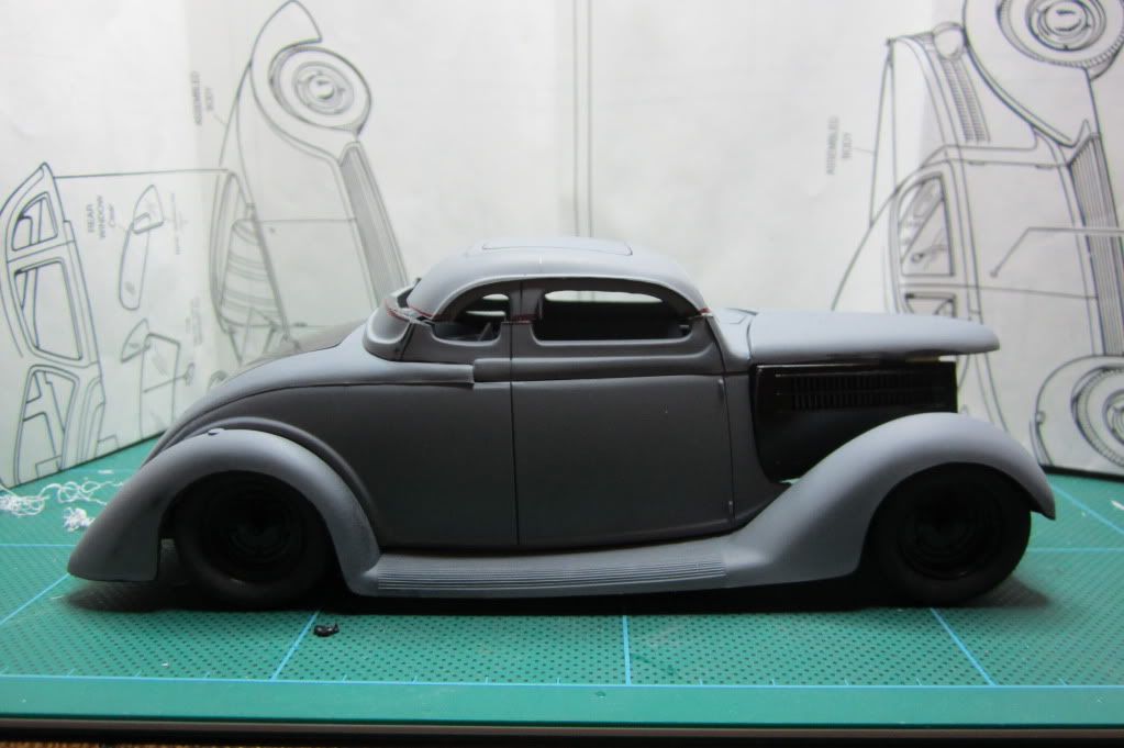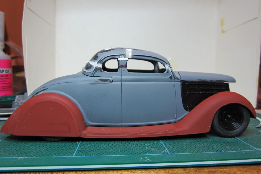 Body will be satin black and the fenders will be metallic red. I plan to install a Revell Parts Pak Caddy V8 with the six carbs.